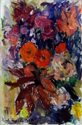 Rote Blumen; Öl/Lw, 1965, 73 x 48 cm