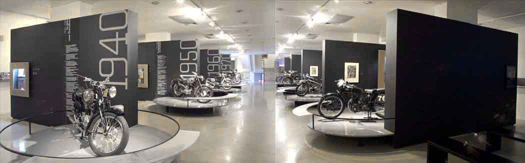 Bis 14. März 2004 ist im Haupthaus des Salzburger Museums Carolino Augusteum eine außergewöhnliche Ausstellung zu sehen: "MotorradKult(ur). 1900-1970". Außergewöhnlich schon allein deshalb, weil historische Motorräder ja nicht zu den Standardobjekten unserer Ausstellungen zählen. Doch Technik ist Teil unserer Kulturgeschichte und besonders spannend wird die Technik für das Museum, wenn man sie so deutlich nachzeichnen kann wie bei der Entwicklung der Motorräder und sie dann noch in Vergleich zu Mode, Kunst, Alltagskultur und Designobjekte der jeweiligen Zeit stellt. Dazu gibt es interessante Informationen über die wichtigsten Ereignisse der acht Jahrzehnte und Ausschnitte der einstigen "Austria Wochenschau" aus den 1960er Jahren.