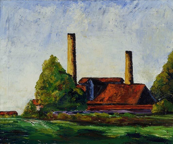 Glashütte Bürmoos, ca. 1932, Öl/Leinwand, 49 x 60, Privatbesitz Salzburg