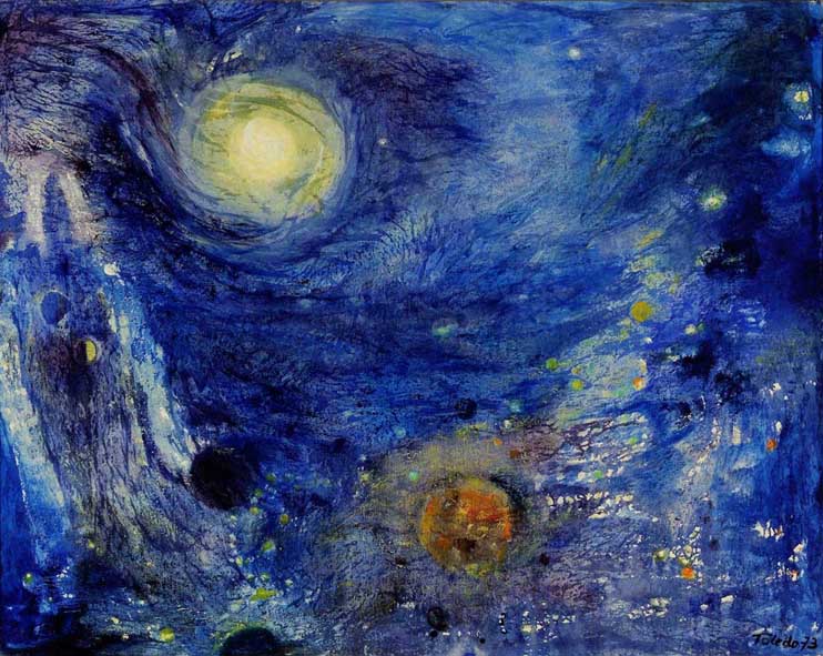 "Gott sprach: Leuchten seien am Gewölb des Himmels, zwischen dem Tag und der Nacht zu scheiden, daß sie werden zu Zeichen, so für Gezeiten, so für Tage und Jahre und seien Leuchten am Gewölb des Himmels, über die Erde zu leuchten. Es ward so. Gott sah, daß es gut ist."