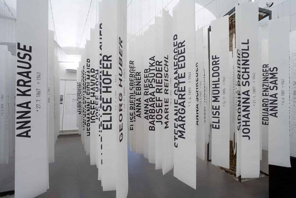 Auf rund fünfzig Laufmetern Präsentationsfläche wird die Geschichte der NS-Euthanasie dargestellt. Korrespondierend zu diesen Inhalten werden Original-Exponate gezeigt. Die Namen der etwa 400 Salzburger Opfer sind auf durchscheinende, schmale Stoffbahnen gedruckt, die von der Decke der Säulenhalle hängen. Ein Rundgang führt die Besucher durch die eng gehängten Namensfahnen, wodurch man mit den Opfern gewissermaßen "in Berührung" kommt. In einem eigens für die Ausstellung gestalteten Film von Hermann Peseckas und Reinhold Tritscher erzählen Zeitzeugen ihre Erinnerungen. Eine weitere Projektion zeigt historisches Filmmaterial.